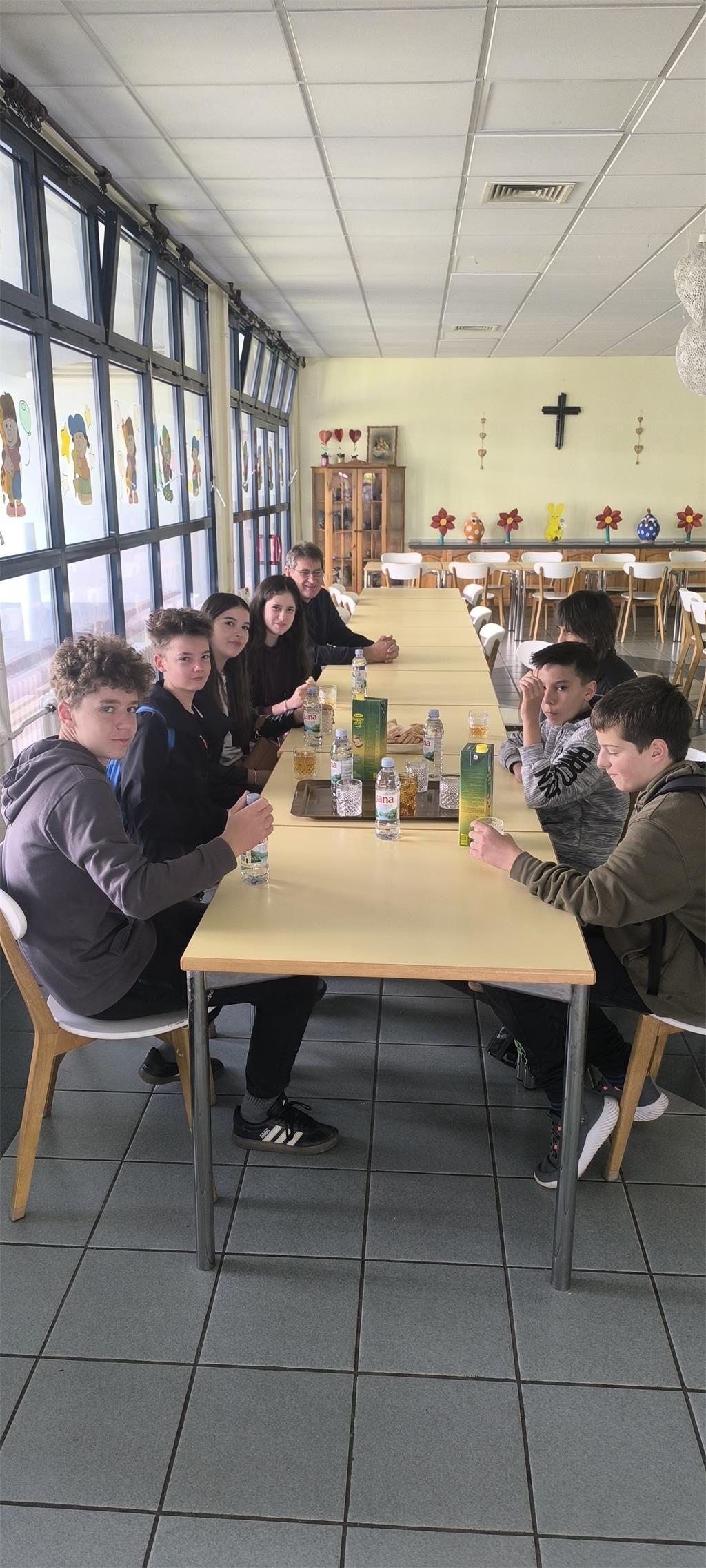 Dana 9. travnja 2026. godine, osam učenika u pratnji vjeroučitelja posjetilo je Pučku kuhinju. Ondje su ih s velikom toplinom i radošću primile časne sestre koje su im pripremile doručak i prigodne uskrsne darove. Učenici su imali priliku upoznati samostanski život, razgledati samostan i samostansku crkvu te se susresti s korisnicima kuhinje. Tijekom ručka družili su se s osobama koje su se, zbog različitih životnih okolnosti, našle u teškim situacijama - u siromaštvu, bolesti ili bez doma. Učenici su im podijelili prikupljene darove i uputili riječi ohrabrenja i blizine. Zahvalnost i radost na licima korisnika ostavili su dubok dojam na sve prisutne. Nakon toga i sami su, zajedno s časnim sestrama, podijelili obrok u ozračju zajedništva i zahvalnosti.