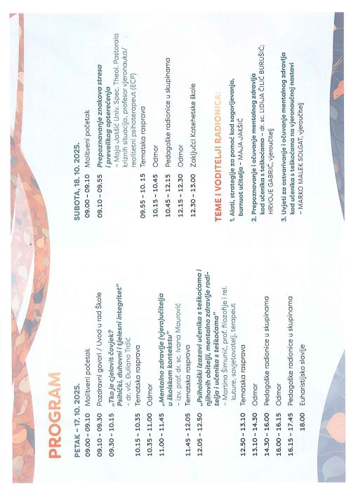 Katehetska jesenska škola - Mentalno zdravlje (vjero)učitelja i (vjero)učenika