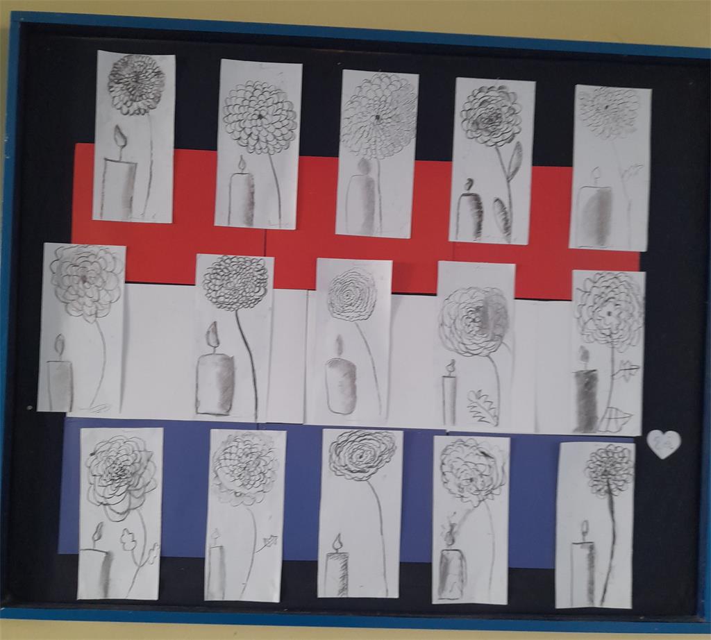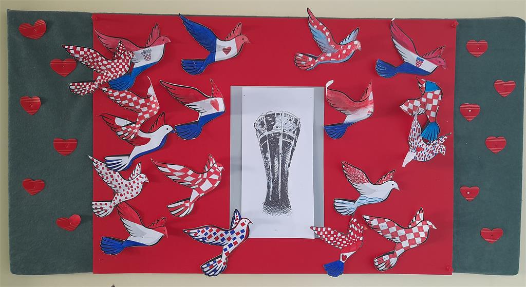 Na nastavnim predmetima kao i na vjeronauku gledali smo dokumentarne filmove, pisali, pjevali i likovnim stvaralaštvom izražavali svoje dojmove i doživljene ovog događaja. Uz vučedolske golubice, svijeće, cvijeće… najviše su u svojim radovima prikazivali Vukovarski vodotoranj koji je sagrađen u 60-im godinama prošlog stoljeća i tada bio ključna građevina. Visok 50 metara s kapacitetom rezervoara od 2200 kubnih metara krasio je Grad Vukovar kao jedna od najvećih građevina te vrste u cijeloj Europi. Tijekom bitke za Vukovar, vodotoranj je primio više od 600 neprijateljskih projektila i postao simbol stradanja, ali i otpora jer je odbio srušiti se. Godine 2020., obnovljen je i postaje simbolom hrvatskog zajedništva.