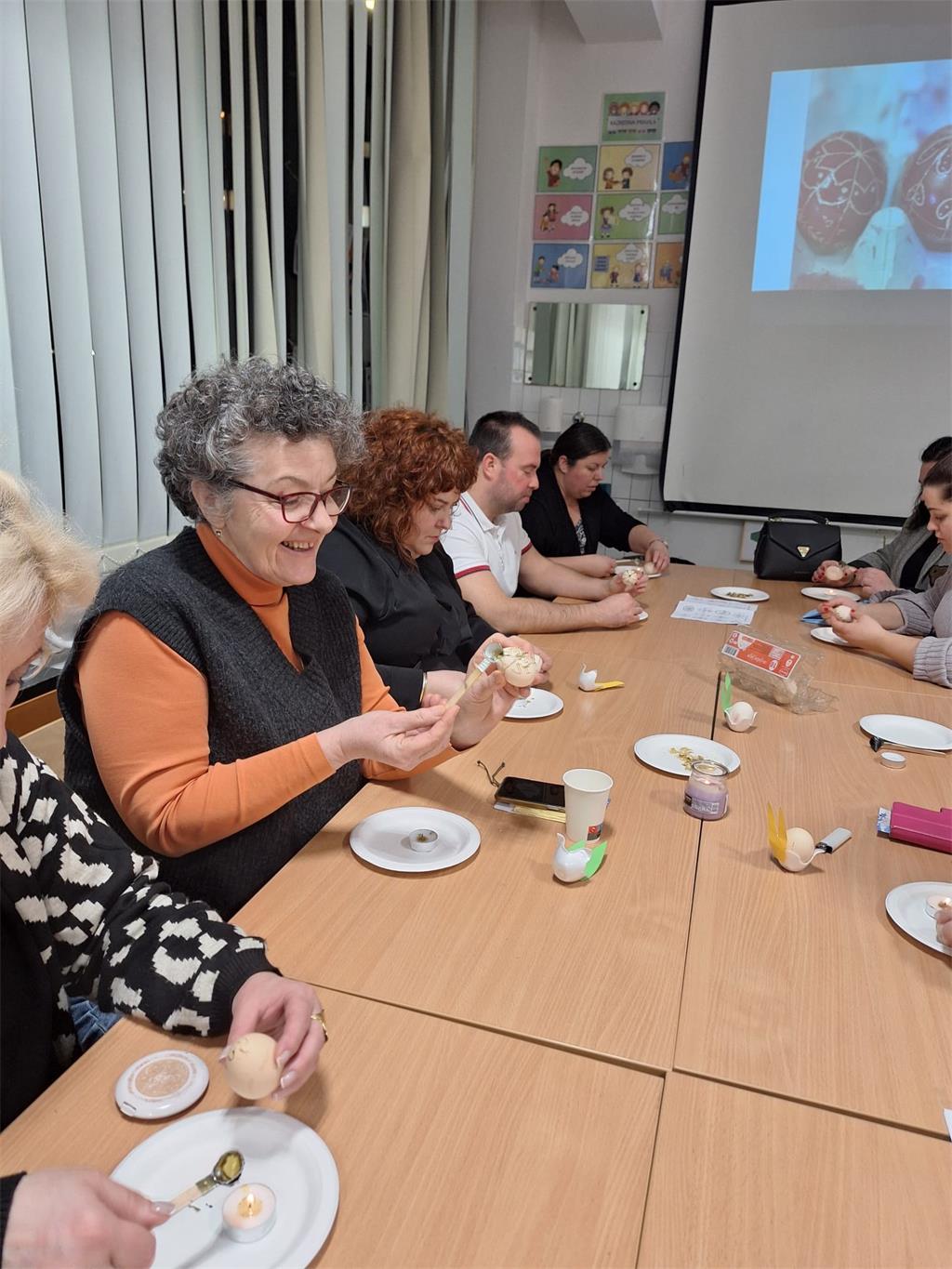 Kolegica Vesna Lukinić demonstrirala nam je kako se pisanice ukrašavaju voskom, a zatim svakom vjeroučitelju dala pribor u ruke te čekala da nastanu nove pisanice. Brojni kolege bili su oduševljeni ovim radionicama, neke je Vuzem vratio u djetinjstvo, nekima je ovo bio poticaj da u vremenu koje nam dolazi baš na ovaj starinski način ovog Uskrsa ukrase pisanice kod kuće.