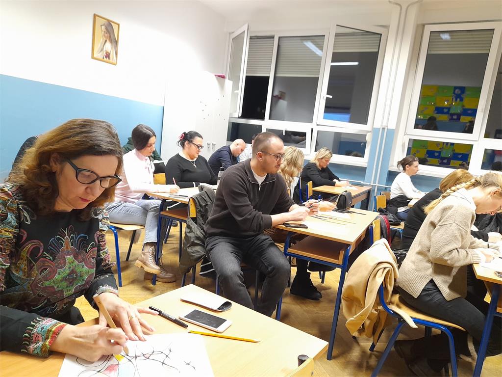 Prisutne vjeroučitelje s neurografikom upoznala je Kristina Horvat, mag. educ. art, mentor predstavljajući temu „Korelacija Likovne kulture i Katoličkog vjeronauka“. Sudionici su saznali da je neurografika kreativna i psihološka metoda koja spaja crtanje, rad s podsviješću i osobni razvoj. Jedna je od modernih metoda oporavka neuronske mreže. Slijedeći upute učiteljice Martine sudionici su se i sami okušali u izradi neurografike.