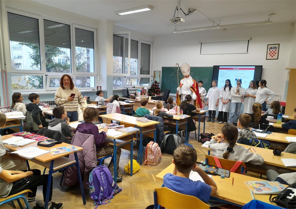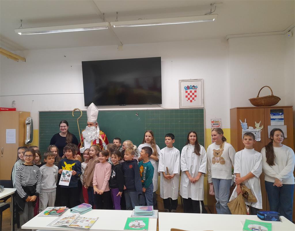 Susretu sa sv. Nikolom veselili su se svi učenici naše škole. Radosnih lica, sa sjajem u očima i velikog srca dočekali su sv. Nikolu u svojim učionicama sa spremnim čestitkama njemu za imendan koje su sami kreativno izradili i napisali mu. U tome su im pomogle i njihove vrijedne učiteljice.