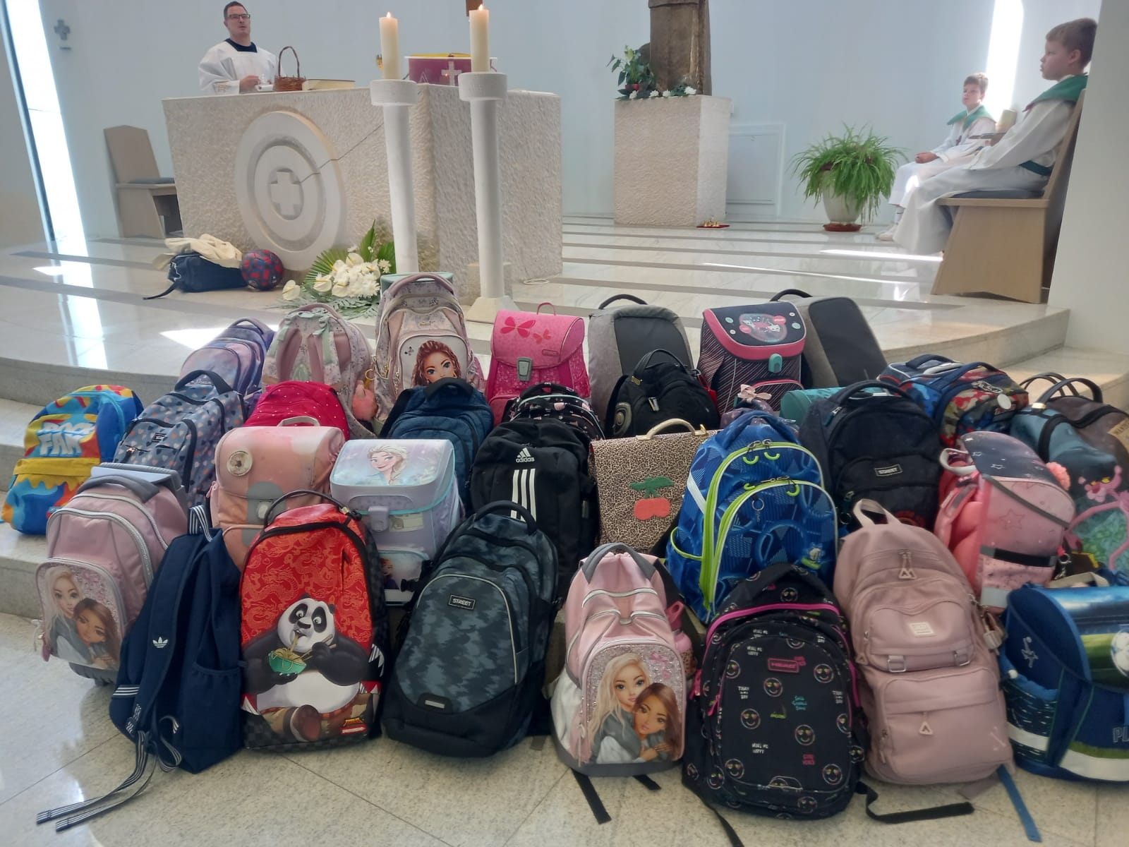 Zatim smo u prinosu darova simbolično prinijeli Gospodinu sve učenike naše škole, školsku torbu, jaknu, loptu, vjeronaučni udžbenik i Bibliju - Knjigu nad knjigama.