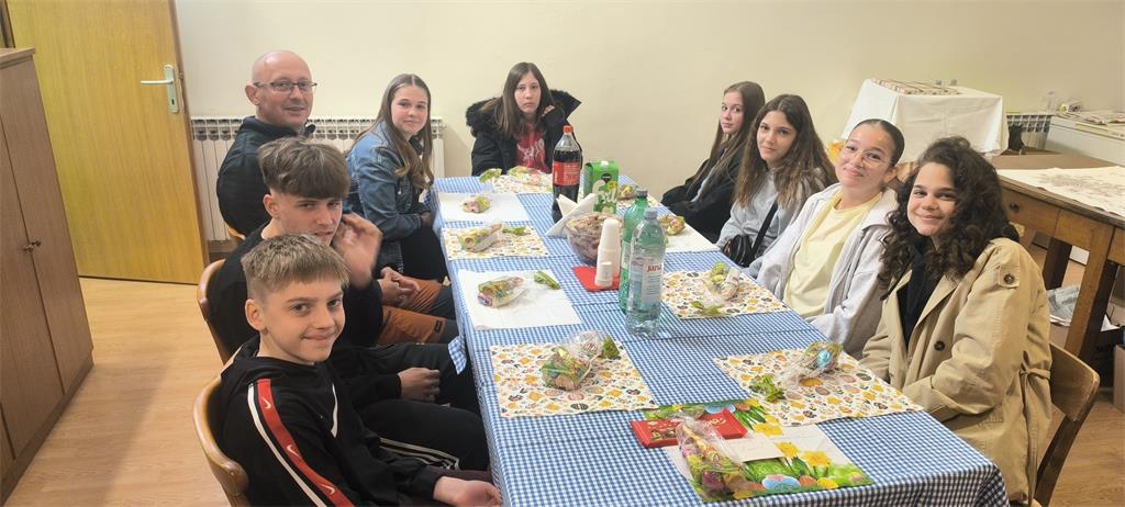 Dana 9. travnja 2026. godine, osam učenika u pratnji vjeroučitelja posjetilo je Pučku kuhinju. Ondje su ih s velikom toplinom i radošću primile časne sestre koje su im pripremile doručak i prigodne uskrsne darove. Učenici su imali priliku upoznati samostanski život, razgledati samostan i samostansku crkvu te se susresti s korisnicima kuhinje. Tijekom ručka družili su se s osobama koje su se, zbog različitih životnih okolnosti, našle u teškim situacijama - u siromaštvu, bolesti ili bez doma. Učenici su im podijelili prikupljene darove i uputili riječi ohrabrenja i blizine. Zahvalnost i radost na licima korisnika ostavili su dubok dojam na sve prisutne. Nakon toga i sami su, zajedno s časnim sestrama, podijelili obrok u ozračju zajedništva i zahvalnosti.