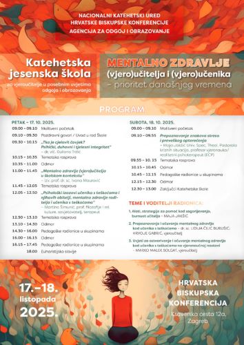 Katehetska jesenska škola - Mentalno zdravlje (vjero)učitelja i (vjero)učenika