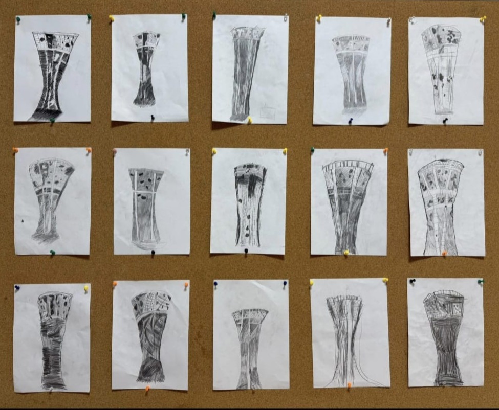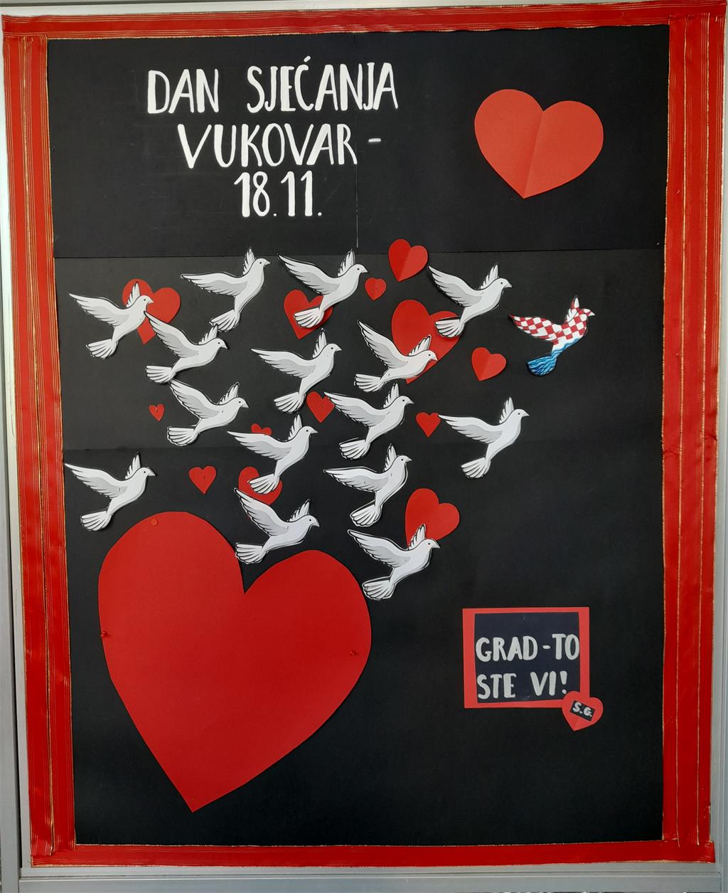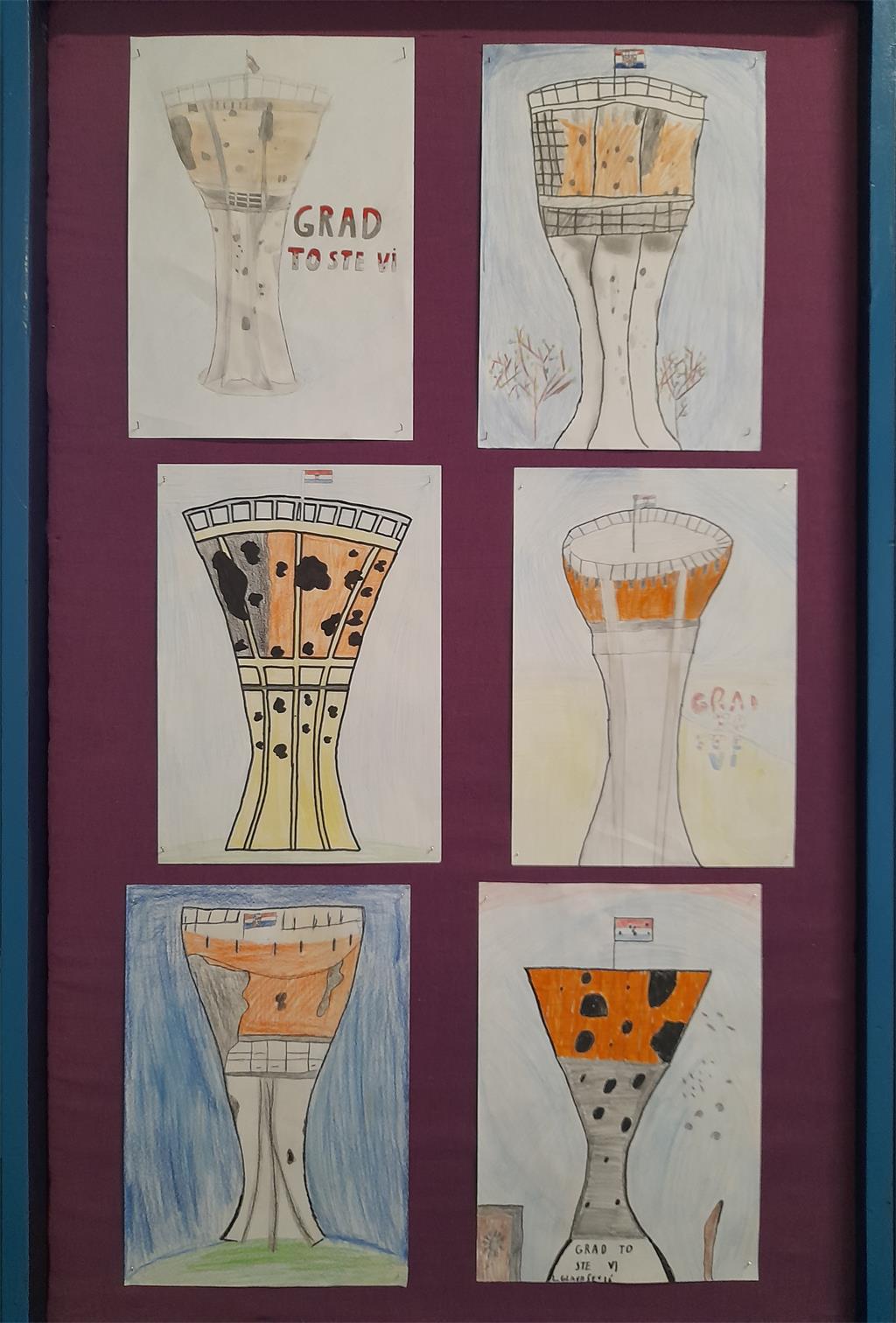 Na nastavnim predmetima kao i na vjeronauku gledali smo dokumentarne filmove, pisali, pjevali i likovnim stvaralaštvom izražavali svoje dojmove i doživljene ovog događaja. Uz vučedolske golubice, svijeće, cvijeće… najviše su u svojim radovima prikazivali Vukovarski vodotoranj koji je sagrađen u 60-im godinama prošlog stoljeća i tada bio ključna građevina. Visok 50 metara s kapacitetom rezervoara od 2200 kubnih metara krasio je Grad Vukovar kao jedna od najvećih građevina te vrste u cijeloj Europi. Tijekom bitke za Vukovar, vodotoranj je primio više od 600 neprijateljskih projektila i postao simbol stradanja, ali i otpora jer je odbio srušiti se. Godine 2020., obnovljen je i postaje simbolom hrvatskog zajedništva.