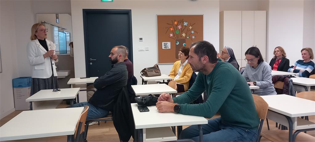 Predavanje na temu „Škola i župa u dijalogu: jezik i metode vjeroučitelja u izgradnji moderne nastave“ održale su kolegice Nataša Čurić i Martina Filipović. Predavanje je bilo usmjereno na jačanje suradnje između škole i župe. Poseban naglasak stavljen je na konkretne primjere iz prakse koji mogu povezati ta dva odgojna prostora. Istaknuta je važnost župnog katehetskog tima koji zajednički planira i provodi aktivnosti. Navedeni su konkretni projekti, poput školskih ili župnih inicijativa koje povezuju učenike s praktičnim životom vjere. Takvi projekti omogućuju učenicima aktivno sudjelovanje i razvijanje osjećaja pripadnosti. Kroz predavanje je istaknuto da je za modernu nastavu vjeronauka ključno povezivanje teorije i prakse. Kvalitetan dijalog između škole i župe, uz primjenu suvremenog jezika i metoda, omogućuje vjeroučitelju da učenicima približi vjeru na autentičan i razumljiv način. Suradnja, otvorenost i kreativnost pritom su temelj uspješnog odgojno-obrazovnog djelovanja.