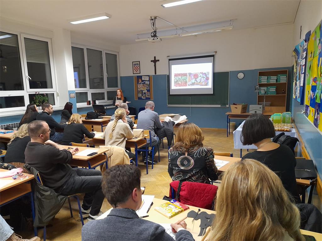 „Učenici s teškoćama u razvoju“ tema je koju nam je prezentirala Ana Delić, mag. theol i mag. edu. reh. Vjeroučiteljica Ana nas je podsjetila tko su učenici s teškoćama prema Zakonu o odgoju i obrazovanju, te vrstama teškoća s kojima se susrećemo u svakodnevnom radu. Naglasila je kako učitelji, od praćenja i uočavanja mogućih odstupanja u psihofizičkom razvoju do stvaranja povoljnog ozračja za uključivanje učenika s teškoćama, imaju važnu ulogu u radu s učenicima s teškoćama. Kroz primjere dobre prakse kolegica je pokazala kako izraditi individualizirani kurikulum za učenike s teškoćama u razvoju prema obliku školovanja.