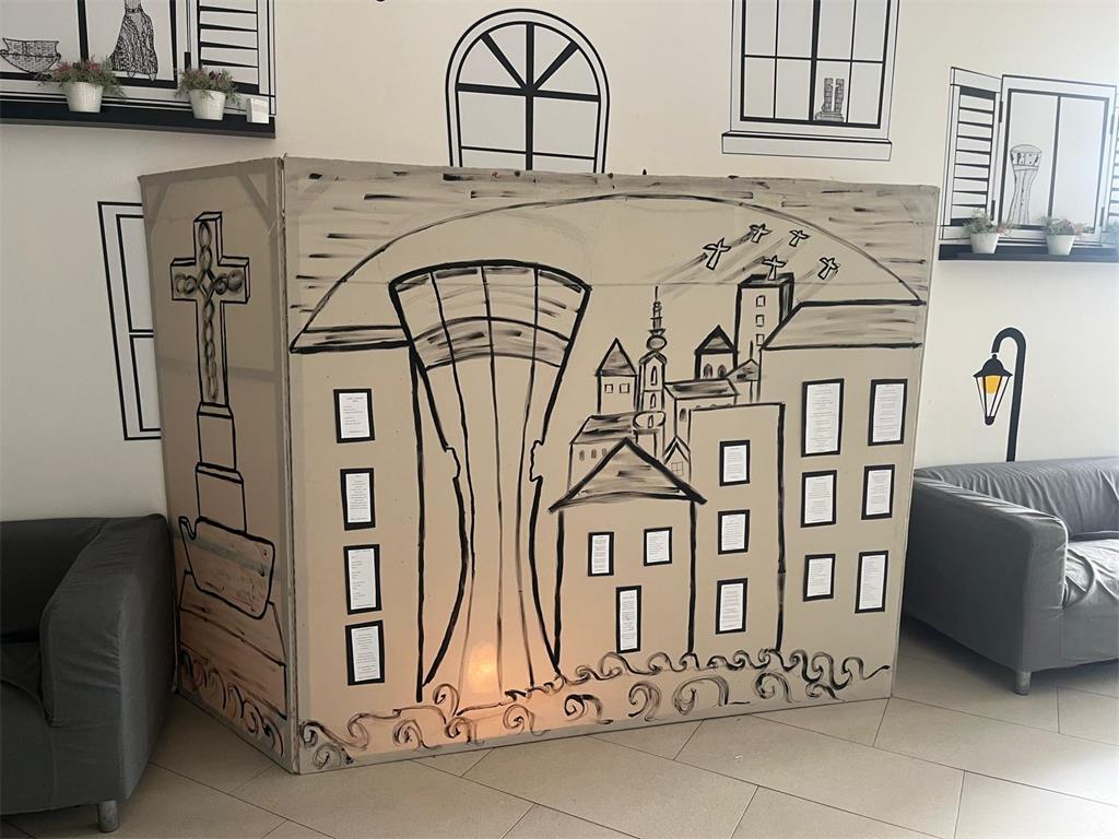 U predvorju su škole na platnu oslikani obrisi grada Vukovara, a prozore su zamijenili literarni radovi učenika. U hodniku škole učenici su naslikali Dvorac Eltz i golubicu. U svaki je prozor Dvorca predstavnik razrednog odjela upisao jednu riječ koja simbolizira snagu i junaštvo branitelja i grada Vukovara i Škabrnje. U svojim su učionicama, kroz motive različitih priča (o igri, zagrljaju, obitelji, djetinjstvu, roditeljima, ljubavi, gradovima, snazi, dostojanstvu, slobodi…), učenici pisali i slikali o važnim životnim stvarima i istaknuli koliko je važno živjeti u miru i slobodi. Njihovi su radovi postali dio pogleda s vukovarskog prozora.