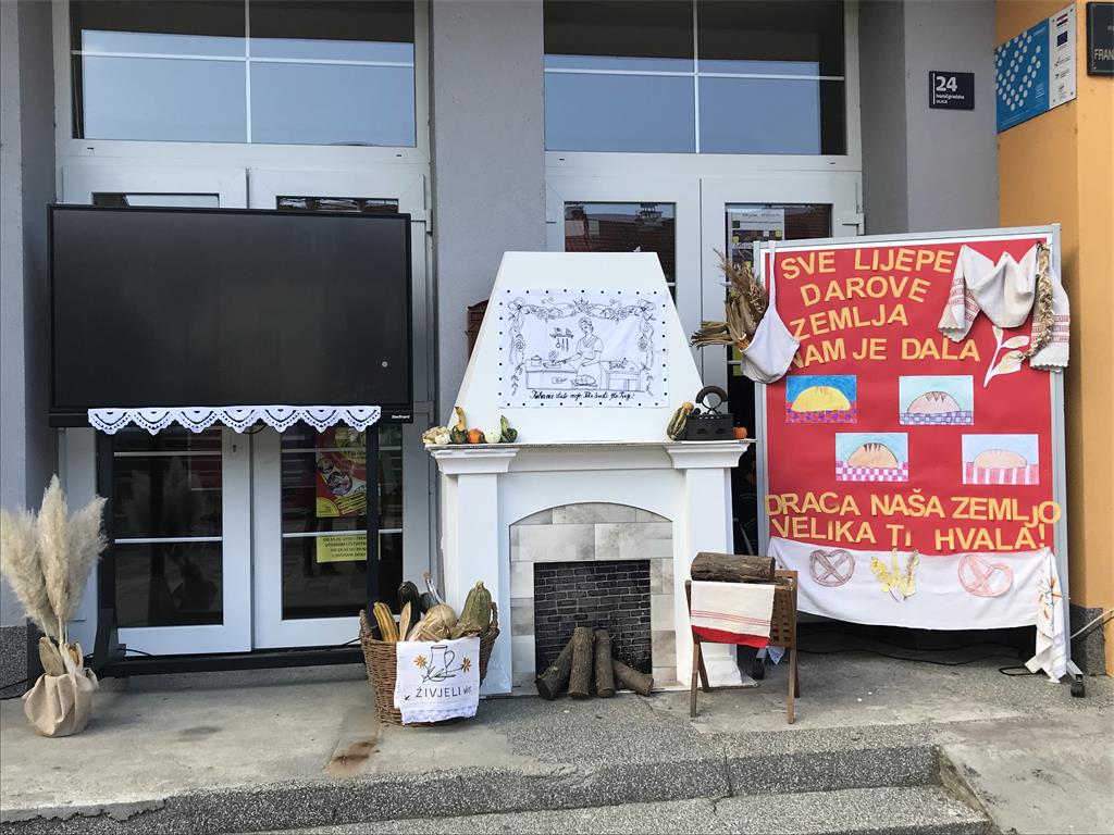 U OŠ Frana Krste Frankopana 17. listopada proslavili smo Dan kruha i zahvalnosti za plodove zemlje, tom prigodom tradicionalno je održan prigodni program u kojem su vjeroučenici, polaznici Vjerolaba , u zajedničkoj suradnji s vjeroučenicima 1.a razreda prezentirali svoj rad recitiranjem teksta „ Od žita do kruha“ uz animaciju koja je istovremeno bila prikazana na interaktivnom televizijskom ekranu. Budući da su vjeroučenici 1.a razreda prvi put nastupili na školskoj priredbi, nagrađeni su glasnim pljeskom za svoj hrabri i odvažni nastup.