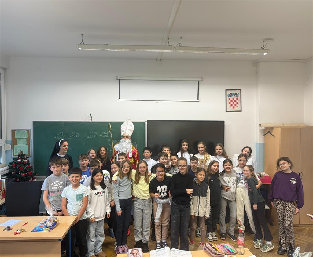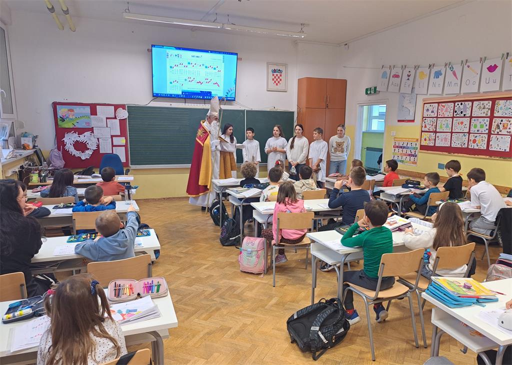Susretu sa sv. Nikolom veselili su se svi učenici naše škole. Radosnih lica, sa sjajem u očima i velikog srca dočekali su sv. Nikolu u svojim učionicama sa spremnim čestitkama njemu za imendan koje su sami kreativno izradili i napisali mu. U tome su im pomogle i njihove vrijedne učiteljice.
